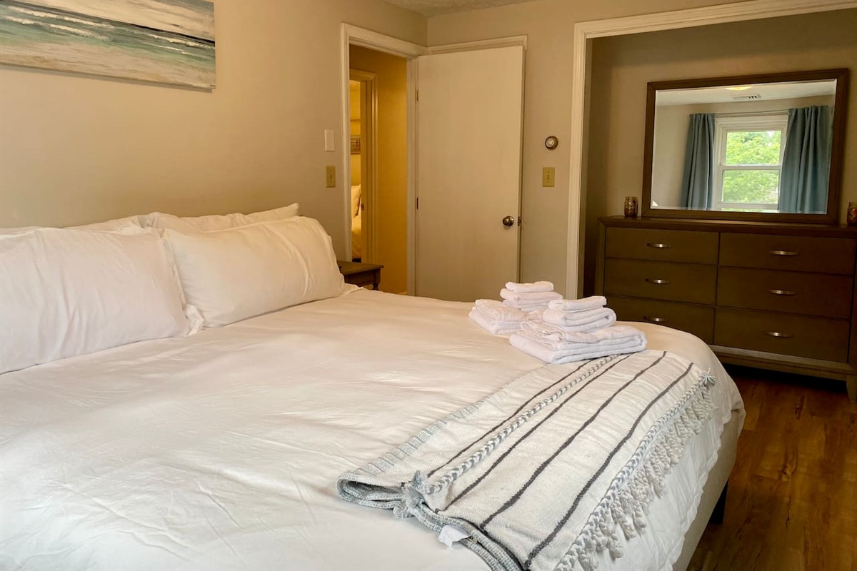 Sleeping for 8 guests | Parking for 3 Cars | Bedroom 1: King Bedroom | Bedroom 2: Queen Bedroom | Bedroom 3: Two Twin Bedroom | Alcove: Two Twin Bedroom | Two Full Bathrooms | W+D in unit | Linens & Towels Included | Central Air Conditioning | Salt & Shine Concierge Available
