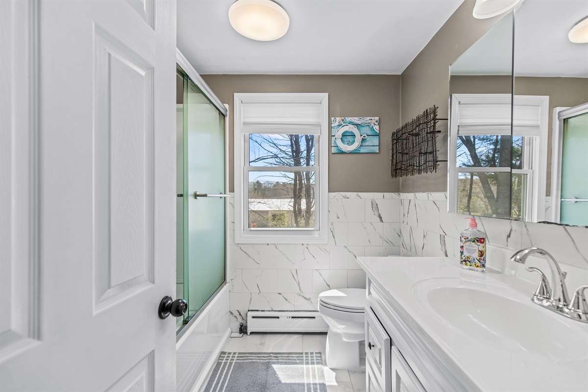 Outside, a generously sized backyard invites guests to enjoy the Maine air. A charming pergola and picnic tables set the scene for barbecues, games, or simply relaxing after a day at the beach. It’s the perfect gathering space for everyone to enjoy.